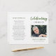 Cet élégant programme de cérémonie de commémoration de photos vert et noir est une belle façon de se souvenir d'un être cher pendant la célébration de la vie. Une fois que vous les recevez, pliez-les en deux et offrez-les à des invités de cérémonie.