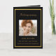 Un programme élégant de 4 pages. Un arrière - plan noir, un cadre en faux or et un espace pour votre photo sur le devant. Personnalisez et ajoutez le nom, les dates et votre texte. Texte doré.