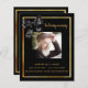 Un programme élégant de 2 pages. Un arrière - plan noir, un faux cadre doré, un arc noir et un espace pour une photo. Personnalisez et ajoutez le nom, les dates et votre texte.