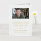 Programme funéraire plié blanc et or imprimé avec une photo de votre être aimé, leur nom et les années de vie, et nécrologie.