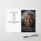 Les programmes de funérailles avec photo personnalisés comprenant une nécrologie et un ordre de service offrent une manière digne et personnalisée d'honorer la vie d'un être cher. Comportant une photo de memorial en pleine page avec des polices élégantes script et serif, ce modèle comprend un espace pour les remerciements, les porteurs de cercueil, les porteurs de fleurs et un message d'hommage sincère. La mise en page intérieure coordonnée fournit un ordre de service structuré ainsi qu'un espace pour une nécrologie écrite ou un résumé de vie, ce qui la rend idéale pour les mémoriaux, les cérémonies de départ ou les célébrations de la vie. Cette conception de programme de funérailles personnalisable allie simplicité et élégance pour créer un souvenir significatif pour la famille et les invités.