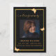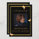 Un programme élégant de 2 pages. Un arrière - plan noir, un cadre en faux or, des papillons dorés et un espace pour une photo. Personnalisez et ajoutez le nom, les dates et votre texte.