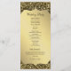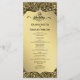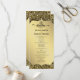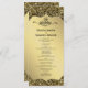 Ce programme de mariage allie sophistication et élégance intemporelle. Le côté avant présente les noms du couple surlignés dans un cadre damassé doré orné, dressé contre un arrière - plan noir profond. Au contraire, le programme de mariage complet est affiché sur un panneau doré chatoyant bordé de fleurs damassées assorties. Toutes les zones de texte sont entièrement modifiables, ce qui rend cette carte parfaite pour des célébrations mariages formelles, élégantes et mémorables.