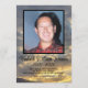 Personalize a funeral program with the photo of the deceased loved one. The background features a cloud photo with golden rays of sunshine. The quote, "Life is eternal, and love is immortal, and death is only a horizon; and a horizon is nothing save the limit of our sight," by Rossiter Worthington Raymond is on the front below the photo, name and years of life. On the back is room for the order of services for the funeral, the list of pallbearers, and another quote, "Like a bird singing in the rain, let grateful memories survive in time of sorrow," by Robert Louis Stevenson. Photos and text are set up to be personalized with your own photos and text. If you need help customizing, please contact me.