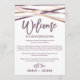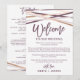 Ces banderoles rose gold avec cartes de lettre d'accueil et d'itinéraire sont parfaites pour un mariage moderne. Le design chic présente des lignes qui se croisent en violet prune, rose blush et feuille de faux rose gold pour un aspect géométrique. Le recto de la carte présente une lettre d'accueil et le verso présente l'itinéraire du mariage. Ces notes sont parfaites pour les mariages de destination et les sacs de bienvenue pour les invités de l'hôtel.