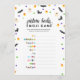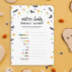 Joli jeu de baby shower à thème Halloween avec chauves-souris noires, une botte de sorcières, fantômes, maïs bonbon et pois.. Le jeu de baby shower est "Picture book emoji" où vous devinez le nom des livres pour enfants préférés des émoticônes. Back a un arrière - plan noir avec le motif thématique Halloween. Amusement pour les baby showers d'octobre ! Les réponses sont les suivantes : Pat the Bunny (également accepté : The Runaway Bunny) | Où Sont Les Choses Sauvages | Un poisson, deux poissons, poisson rouge, poisson bleu | La Caterpillar Très Affamée | Bonne Lune | Le poisson arc-en-ciel | Le Jour de la neige | Ne laissez pas le Pigeon conduire le Bus! | Oeufs Verts Et Jambon | Allez, Chien. Allez !