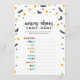 Joli jeu de baby shower à thème Halloween avec chauves-souris noires, une botte de sorcières, fantômes, maïs bonbon et pois.. Le jeu de baby shower est "nursery rhyme emoji" où vous devinez le nom de la comptine préférée rime des émoticônes. Back a un arrière - plan noir avec le motif thématique Halloween. Amusement pour les baby showers d'octobre ! Les réponses sont les suivantes : Cinq petits singes (Jumping sur le lit...) | Le pont de Londres tombe | Twinkle Twinkle Little Star | Pluie, Pluie S'Éloigne | Marie avait un petit agneau | Rangée, Rangée, Rangée Votre Bateau | Baa Baa Black Sheep | Le vieux McDonald avait une ferme | Roues dans le bus (Rond et rond...) | Itsy Bitsy Spider (Monté le bec d'eau...)