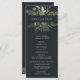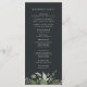 Notre programme de mariage hivernal chic comprend vos détails de cérémonie en lettres élégantes et classiques, avec vos noms flanqués de feuillage aquarelle peint dans des tons riches de vert chasseur. Reverse side liste les membres de votre mariage avec des champs de texte facilement modifiables. Coordonnée avec notre collection de faire-part de mariage de prairie d'hiver. Utilisez les champs modèle pour ajouter vos informations de cérémonie et de fête de mariage, puis repositionnez les éléments si nécessaire.