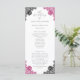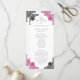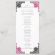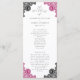 Elegant hot pink and black wedding program featuring elegant floral lace.