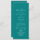 Ce programme de mariage turquoise de calligraphie de style idyllique est parfait pour un mariage simple. Le design sobre et élégant présente une typographie de script classique et sophistiquée dans un arrière - plan turquoise.
