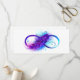 Infinity symbole with a beautiful feather painted in purple and blue bright colors on white background