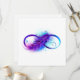 Infinity symbole with a beautiful feather painted in purple and blue bright colors on white background