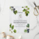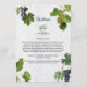 Un beau design avec des raisins de vignes rustiques et des feuilles sur un mur blanc de style méditerranéen de l'île grecque. Une carte de programme d'itinéraire vintage pour la vigne de mariage, idéale pour les mariages de style grec, italien et méditerranéen. Des invitations de mariage et d'autres articles de papeterie sont également disponibles.