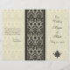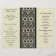 Le texte sur ce modèle de programme mariage damassé ivoire et noir est entièrement personnalisable. Il est destiné à être plié vers le milieu lorsque vous le recevez. Le noir et l'ivoire est un choix classique et sophistiqué pour un mariage ou autre occasion spéciale. Ce programme vintage d'occasion spéciale à motif floral damassé est actuellement customisé comme un programme de mariage, mais il fonctionnerait aussi bien comme un programme pour d'autres occasions spéciales. Vraiment, cela ferait même un très beau bulletin d'église avec des changements au texte. Laissez votre imagination vous mener. Il est recommandé que ce soit acheté seulement comme une finition mate standard de 80lb. L'option papier 100lb est difficile à plier et n'est donc pas recommandée.