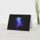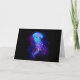 Grande méduse bleue, artistiquement dessinée, brillante, brillante, avec de longues tentacules sur arrière - plan noir avec bioluminescence violette. Méduse brillante.