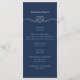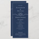 Notre programme minimal et élégant de table marine et de mariage nautique blanc est parfait pour un mariage marin sur le thème de l'océan. La conception présente notre illustration de noeud de corde en forme de coeur dessinée à la main, avec des détails de programme conçus dans un agencement propre et minimal. Les couleurs vives blanches et marines créent un design nautique moderne. L'envers affiche les informations de la fête de mariage. Toutes les illustrations sont dessinées à la main par © Moodthology Papery.