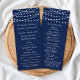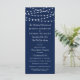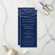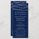 Simple mais élégant, les lampes à cordes de la collection de mariages bleu marine est un design étonnant avec de belles lumières à cordes blanches suspendues sur un arrière - plan bleu marine, qui est parfait pour toute célébration mariage moderne. Ces programmes peuvent être personnalisés pour votre occasion spéciale et rendraient la commande parfaite de service pour votre mariage, douche nuptiale, fête de fiançailles, fête d'anniversaire et bien d'autres occasions spéciales. Ajoutez votre libellé personnalisé à cette conception à l'aide des cases "Modifier ce modèle de conception" situées à droite de l'élément, ou cliquez sur le bouton bleu "Customiser" pour arranger le texte, modifier les polices et les couleurs et ajouter des informations ou des images supplémentaires à cette conception.