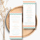 Simple mais élégante, la collection moderne chevron mariage est un design époustouflant avec un joli imprimé zig-zag dans une couleur pêche, menthe et blanche, parfait pour toute célébration mariage moderne. Ces programmes peuvent être personnalisés pour votre occasion spéciale et rendraient la commande parfaite de service pour votre mariage, douche nuptiale, fête de fiançailles, fête d'anniversaire et bien d'autres occasions spéciales. Ajoutez votre libellé personnalisé à cette conception à l'aide des cases "Modifier ce modèle de conception" situées à droite de l'élément, ou cliquez sur le bouton bleu "Customiser" pour arranger le texte, modifier les polices et les couleurs et ajouter des informations ou des images supplémentaires à cette conception.