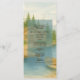 Lake Tahoe Mountain Rustic Wedding Réception Programme et menu lumineux tout en une carte Ce programme et menu capture le charme du lac Tahoe avec ses pins, son lac serein et ses éléments rustiques de lodge. Parfait pour les réceptions de mariage de destination alpine. Facilement personnalisable pour convenir à votre événement. Les textures d'aquarelle assistée par l'IA améliorent sa beauté. Les références aux médias sociaux peuvent générer une petite commission sans frais supplémentaires pour vous.