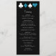Élégant texte est facilement personnalisé sur ce format noir, chic, maigre, Vegas programme de mariage. Le noir et le blanc se sentent sophistiqués lorsqu'ils sont accentués par la parties scintillant bleu turquoise et les combinaisons de cartes blanches.