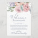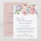 Ces cartes de lettre d'accueil et d'itinéraire aux florales rose poussiéreuse sont parfaites pour un mariage de printemps ou d'été. Le design floral romantique présente des fleurs de lilas pourpre, de rose blush et de pêche disposées dans un magnifique bouquet pastel doux. Le recto de la carte présente une lettre d'accueil et le verso présente l'itinéraire du mariage. Ces notes sont parfaites pour les mariages de destination et les sacs de bienvenue pour les invités d'hôtel.