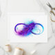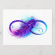 Symbole de l'infini avec une belle plume peinte en couleurs vives violettes et bleues sur fond blanc.