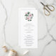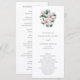 Programme de mariage floral élégant avec un bouquet de fleurs de magnolia roses peintes à l'aquarelle ainsi que des feuilles d'eucalyptus. Le devant comporte votre ordre de cérémonie et le dos comporte votre cortège de mariage. Un charmant programme de mariage idéal pour un mariage de printemps ou d'été.