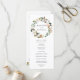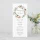 Élégant programme de mariage floral avec vos noms encerclés par une couronne de magnolias d'aquarelle blanche, roses roses rousses, fleurs de coton et feuilles verts. Personnalisez les programmes de mariage floral en ajoutant votre date et emplacement mariage, l'ordre des événements et la fête de mariage au dos. Conçu pour coordonner avec notre collection de mariage Watercolor Magnolias.