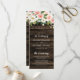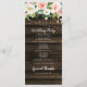 D'élégantes fleurs d'aquarelle et de verdure décorent ces programmes de mariage rustiques. Le design présente des fleurs blanches et roses claires, des lampes à cordes et un arrière - plan en bois de grange foncé avec une police de caractères moderne.