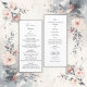 Obtenez votre élégant mariage blanc minimal sur votre menu mariage et le programme de mariage tout en un. Le design mariage a un arrière - plan blanc avec typographie noire. Customisez-le en première page avec votre introduction, vos noms, votre date et votre menu. Sur la page arrière, vous pouvez le customiser avec votre programme de mariage et le changer à vos préférences. Donc avec ce design vous avez le menu sur une page et le programme de mariage sur l'autre côté sans frais supplémentaires. Il s'adapte à nos motifs floraux et comprend la couleur de l'abricot. Conçu pour votre mariage Hobinishop