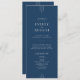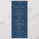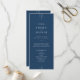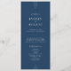 Ce programme de mariage de la collection Everly présente un design art déco raffiné en bleu marine profond avec une typographie blanche croquante et des accents de ligne élégants. La mise en page éditoriale et les détails géométriques créent une ambiance classique, moderne et rétro.