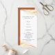 Cadre Bohème Désert Lavis Aquarelle, programme de mariage. Liste de texte modèle pour l'ordre des événements de la cérémonie, cortège de mariage et note de remerciement. La couleur de fond est montrée en orange rouille coordonnant foncé, peut être personnalisée.