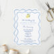 Ce programme de mariage aéré et décontracté présente une bordure bleu clair et ondulée à la main de boho branchée avec un seul citron aquarelle sur chaque page.