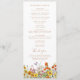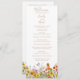 Colorful Wild Flowers Programme Mariage campagnard présente de jolies fleurs de pays en orange, jaune, violet et rose sur un arrière - plan blanc avec votre ordre de cérémonie sur le devant et la fête de mariage et vous remercier à l'inverse dans le script de calligraphie or moderne. Personnalisez en modifiant le texte dans les zones de texte. Conçu pour vous par Evco Studio www.zazzle.com/store/evcostudio