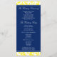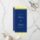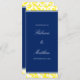 Un programme de mariage élégant jaune et bleu marine. Doté d'un modèle moderne tourbillon damassé. Personnalisez facilement votre événement.