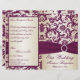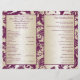 Ce programme mariage damassé à la prune et au champagne de 8,5 po x 11 po a un faux ruban avec broche à bijoux en cristal. Il correspond à l'invitation ci-dessous et est entièrement personnalisable. Il est conçu pour être plié au centre. Tout le texte est personnalisable. Envoyez un courriel à niteowlstudio@gmail.com si vous avez besoin d'aide pour personnaliser ce service ou si vous avez des questions ou des demandes. ****VEUILLEZ NOTER que le papier de qualité supérieure est un stock de carte et ne se plie pas bien.