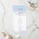 Un design élégant avec les titres principaux définis dans un script inhabituel avec un ornement de feuilles ornées, et vous pouvez facilement personnaliser le reste du texte sur le devant et de retour à vos propres détails. Aquarelles estivales dans les tons rose, bleu et lilas recouvrent partiellement les bords supérieur et inférieur des deux côtés.