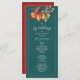 Célébrez votre mariage d'automne grâce à cet élégant programme à deux côtés qui présente un feuillage de chute d'aquarelle dans de riches tons turquoises et oranges brûlées. Ce design boho rustique comprend de l'espace pour l'ordre de cérémonie, la fête de mariage et un message de remerciement. Idéal pour les mariages d'extérieur, de forêt ou de grange, il ajoute une touche personnelle et élégante à votre célébration.