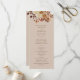 Cet élégant programme de mariage comprend des feuilles d'orange brûlée et de terre cuite peints à la main, des dahlias crème et beige, et de beaux roses de couleur rouille sur un arrière - plan taupe. Trouvez les articles correspondants dans la collection Taupe Autumn Romance.