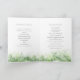 Simple sauge vert double face abstraite verdure aquarelle splat art sur un programme de mariage arrière - plan blanc. Modifiez ces programmes de mariage avec votre nom, dates, libellé de la cérémonie, accompagnateurs de mariage et merci. Un programme simple mais élégant remplace simplement l'exemple de texte par vos informations de mariage et plie les programmes en deux à la livraison. Programme de cérémonie mariage de verdure feuillue moderne. © Peinture et design originaux par Sarah Trett. www.sarahtrett.com pour www.mylittleedenweddings.com