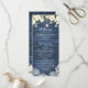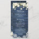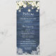 Programme de mariage en dentelle avec des fleurs blanches en bois bleu rustique. Chaîne de bois rustique Lumières Mason Jarres Blanc Floral Vert Mariage Ordre du service