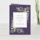 Doté de délicats feuilles d'aquarelle sur un arrière - plan violet, ce programme de mariage botanique plié chic peut être personnalisé avec vos informations spéciales de mariage. Conçu par Thisisnotme©