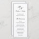 Programme de mariage plat traditionnel et élégant avec un design simple avec vos deux monogrammes initiaux et vos noms dans une calligraphie élégante à l'intérieur d'une mince bordure. Le front a votre ordre de cérémonie et le dos a votre fête de mariage. Ce design classique noir et blanc est parfait pour un mariage formel.