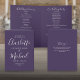 Programme de mariage signature violet avec typographie moderne chic, ce programme de mariage élégant peut être personnalisé avec vos informations spéciales de jour de mariage. Conçu par Thisisnotme©