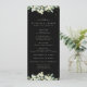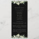 Un programme de mariage noir / ordre de cérémonie, avec une liste pour une petite fête de mariage et un message de remerciement. Doté d'une bordure de neiges peintes à la main et d'eucalyptus. Tout le texte est entièrement modifiable. Veuillez consulter cette collection dans mon magasin pour des programmes avec des formulations et des formats différents et de tailles/couleurs/formes différentes. Coordonner les éléments également disponibles.
