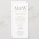 Monogramme moderne Programme de mariage blanc et or. Design élégant et élégant avec texte de couleur or antique sur blanc. Le front comprend les initiales du couple, la date du mariage, la section des remerciements et le programme de la cérémonie. Le dos affiche les noms de la fête de mariage. Personnalisez avec votre propre texte avant et arrière. Vous pouvez customiser toutes les couleurs, le texte et les polices à l'aide des outils fournis dans les menus de personnalisation et de personnalisation de Zazzle. Visitez notre magasin Austen & Grace pour voir la suite mariage complète, les produits correspondants et plus encore, et contactez-nous si vous avez besoin d'aide contact@austenandgrace.com