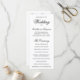 Faites savoir à vos invités à quoi s'attendre lors de votre journée spéciale avec ce programme de mariage traditionnel avec vos noms dans une calligraphie noire élégante et l'ordre de la cérémonie au recto. Le verso présente votre cortège de mariage. Le fond est blanc et peut être changé en n'importe quelle couleur que vous souhaitez. En plus d'informer vos invités sur l'ordre du service et sur qui fait partie du cortège de mariage, ces programmes de mariage font un excellent souvenir. Ce design classique est parfait pour un mariage formel en tenue de soirée.