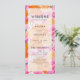Informez vos invités sur le programme de mariage avec cette carte programme élégante, avec des fleurs rose et orange vif, une superposition transparente et votre texte personnalisé. Ajoutez facilement vos propres détails en cliquant sur l'option "personnaliser".