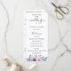 Élégantes fleurs aquarelles bleues poussiéreuses et mauves et feuillage, programme de mariage. Le programme présente une calligraphie mignonne accentuée de "mariage" avec plusieurs lignes pour des listes de texte personnalisées pour l'ordre des événements de la cérémonie, le cortège de mariage et le mot de remerciement.