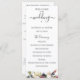 Fleurs et feuillage aquarelle rose et prune, programme de mariage. Le programme présente une calligraphie mignonne "mariage" avec plusieurs lignes pour des listes de texte personnalisées pour l'ordre des événements de la cérémonie, la fête de mariage et la note de remerciement.